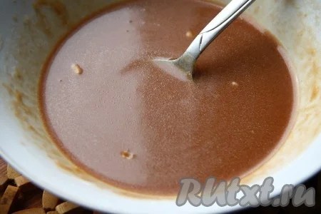 Старайтесь крахмал тщательно размешать, чтобы не было комочков. Вот так выглядит готовый кляр.