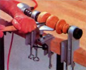 И все же наиболее распространены самодельные токарные станки на основе дрелей, имеющие деревянную станину и, как минимум, примитивные задние бабки.