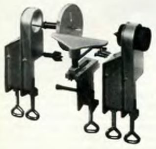 Три узла токарной приставки к дрели: два зажимных упора на подшипниках, в которых центруется и фиксируется обрабатываемая заготовка; в поводковом упорном центре устанавливается дрель (шейкой); третий упор (регулируемый) предназначен для установки режущего инструмента.
